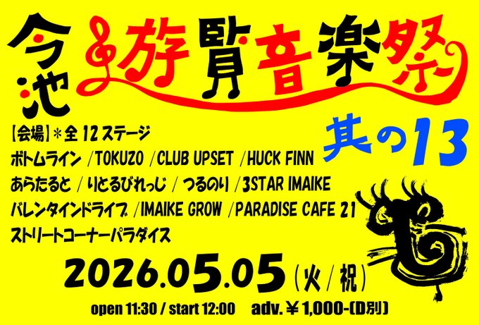 ボトムライン/TOKUZO/CLUB UPSET/HUCK FINN/あらたると/りとるびれっじ/つるのり/3STAR IMAIKE/バレンタインドライブ/IMAIKE GROW/PARADISE CAFE 21/ストリートコーナーパラダイス
